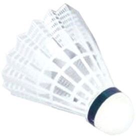 Badmintonball av hvit nylon med korkfot. Middels hastighet.
