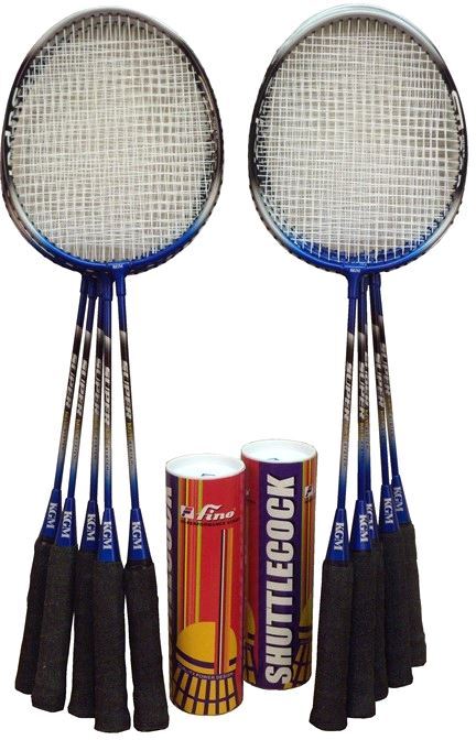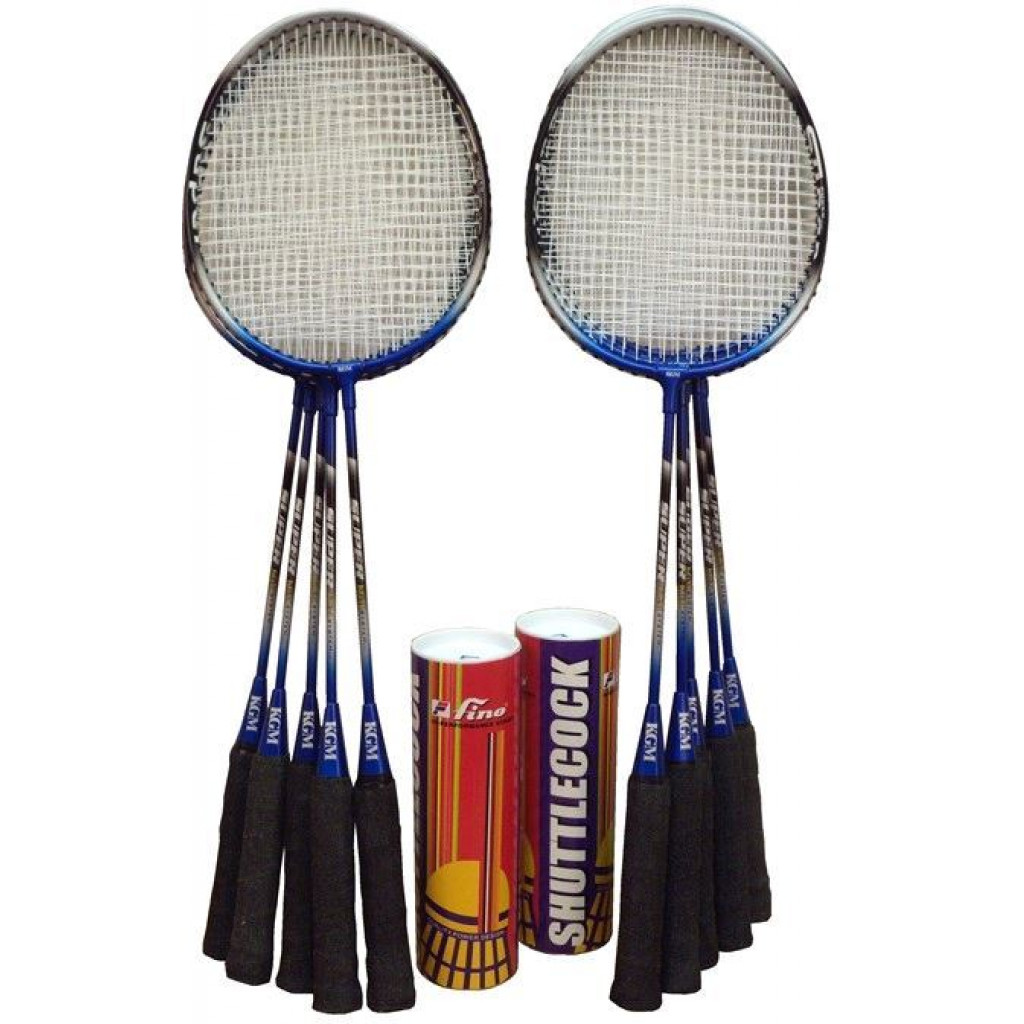 10 stk. badmintonracket, 2 rør med School-baller og veske