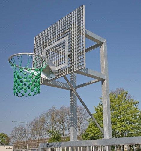 Et kraftig og vandalsikkert basketmål med galvanisert kurv og Hercules nett.
