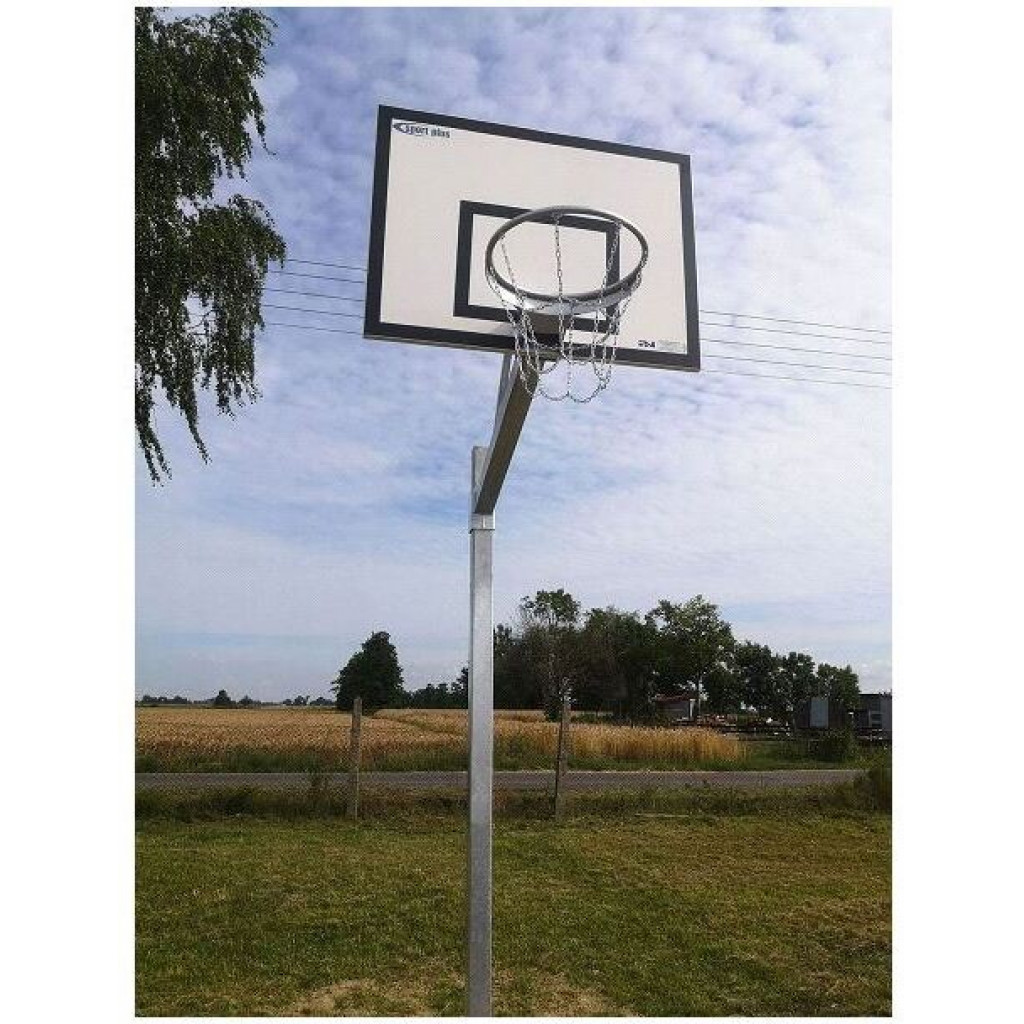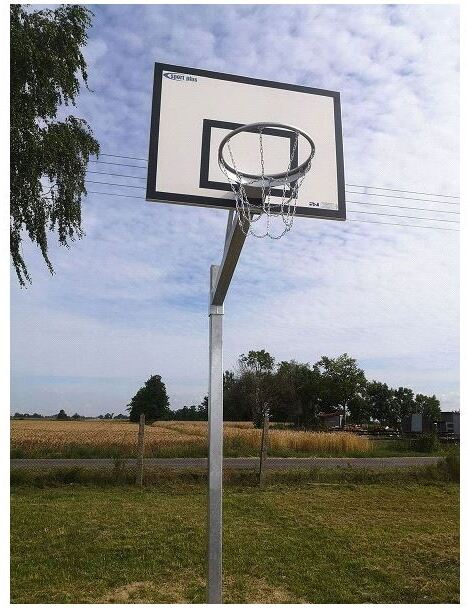 Basketstativ med 100x100 mm galv. stolpe Basketmålet kan monteres i ønsket høyde og med stor/180x105 cm eller liten/120x90 cm plate og utheng på 120, 140 eller 160 cm Basketplatene kan leveres i akrylglass, epoxy eller i galvanisert stål og basketringer finnes i galvanisert