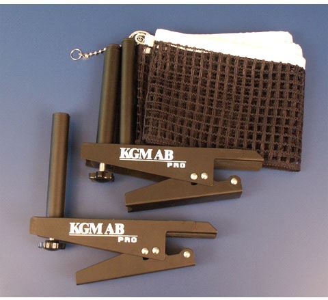 Bordtennis nettholdere med nett. System Clip med hurtigfeste, nettstrammer og høyderegulering. Gummibeskyttelse for skånsom behandling av bordet.