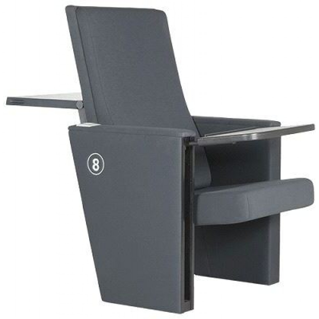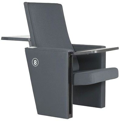 - Backrest Beech solid wood structure over which a MDF board is fixed and in turn, an open cell polyurethane foam block, upholstered by means of a fabric cover, is also fixed. Anti-panic bookrest in laminated wood, concealed in the backrest. The opening occurs by means of a simple movement and a vertical turn. Foam density 40 Kg/m³