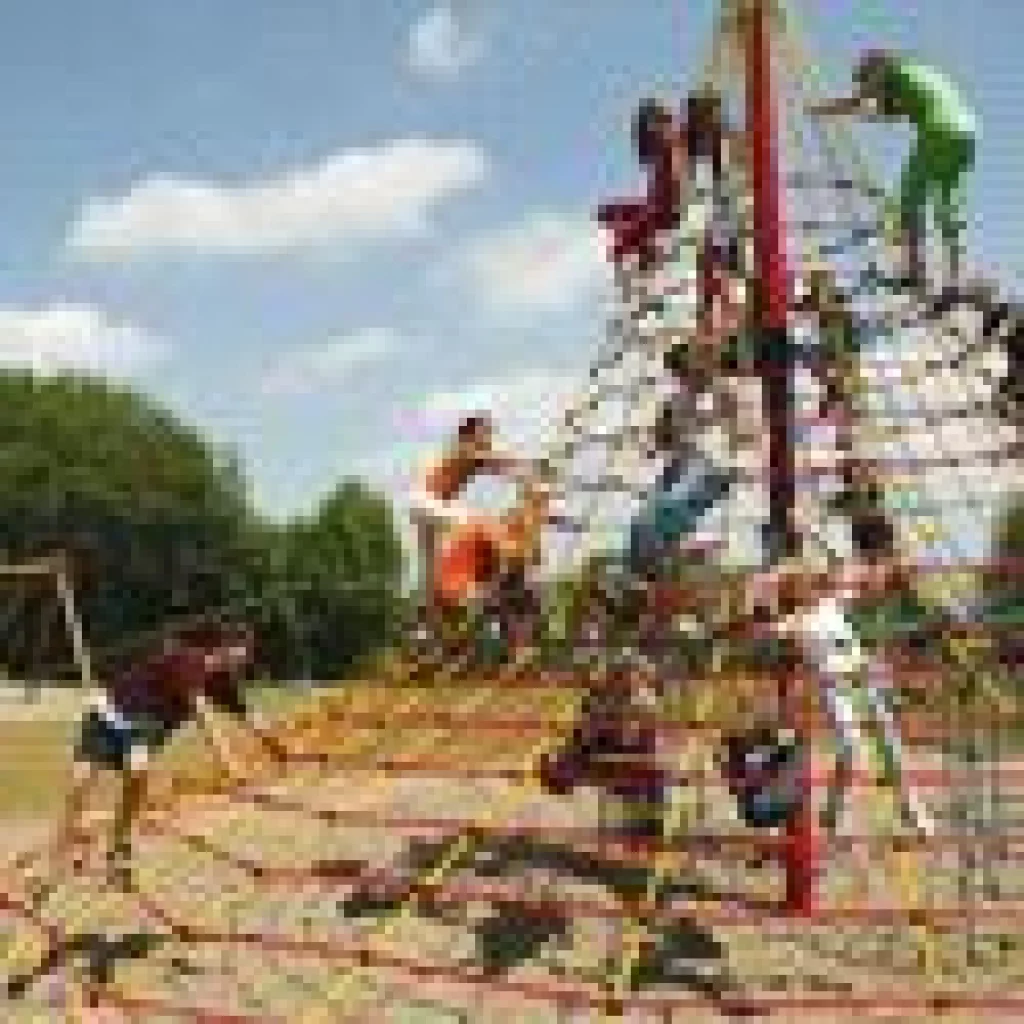 Cheops klatrepyramide Maxi Cheops klatrepyramide Maxi Lekeapparatet består av: 1 steel post (Ø 160 mm), hot-dip galvanised, length 6.30 m, with aluminium cap (powder-coated in red) 6 climbing ladders with plastic rungs 2 climbing