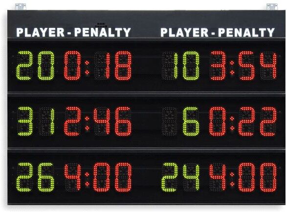 FS-150 Utvisningsmodul for 3+3 spillere med 20 cm siffer - 90 m leseavstand. Utvisningsmodul FS-150 (Art.246) Display for visning av 3 utvisninger pr. lag. Ideell for håndball, innebandy, vannpolo, 5-a-side fotball (Futsal), etc..