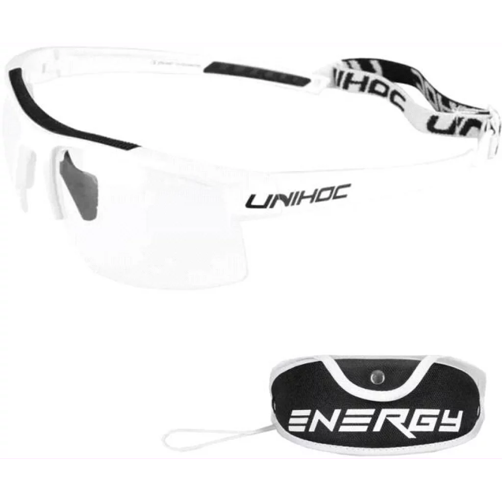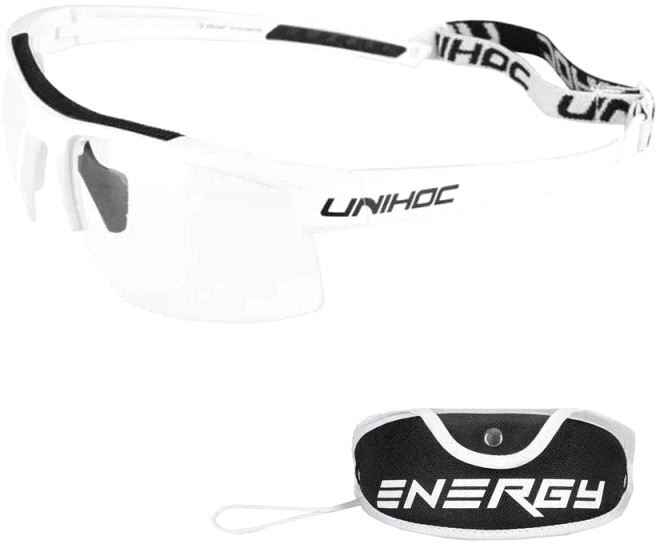 Unihoc innebandybriller til ungdom gir maksimal beskyttelse under spill og trening. Beskyttelsesbrillene har justerbare neseputer og hodestropp. Dette er en litt større juniormodell med gummipanel langs innsiden av