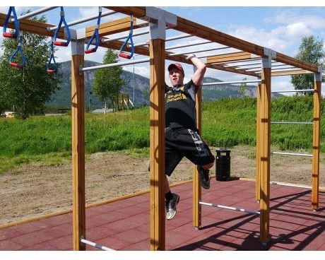 Stor klatrekube med taustige, bøyler, armgang og klatrestenger. Klatrestativet er egnet for alle uansett alder. Klatrekuben kan brukes som frittstående lekeapparat, eller som en del av en hinderløype Solid utførelse som egner seg godt til bruk i skolegården og
