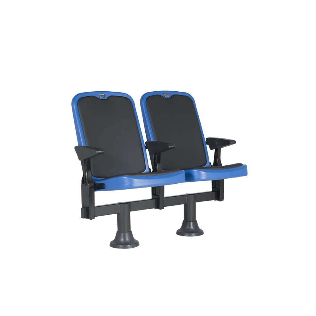 - Seat Extrusion blow moulded in texturized high-density polyethylene. Structure fixed over an open cell polyurethane foam block upholstered by means of a fabric cover. When seat pan unfolds, the backrest leans and raises, thus adopting a standard position and so, the armrest remain in horizontal position, everythin in a same single synchronized movement. The seat pan folds under an automatic noiseless maintenance-free gravity system. Foam density, 40 kg/m3