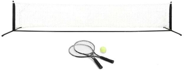 Komplett minitennis i sett. Perfekt til hagen, stranden eller lekeplassen! Minitennissettet består av: 1 stk stålramme til nett 1 stk nett 3,65 m 2 stk racketer 1 stk tennisball
