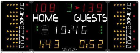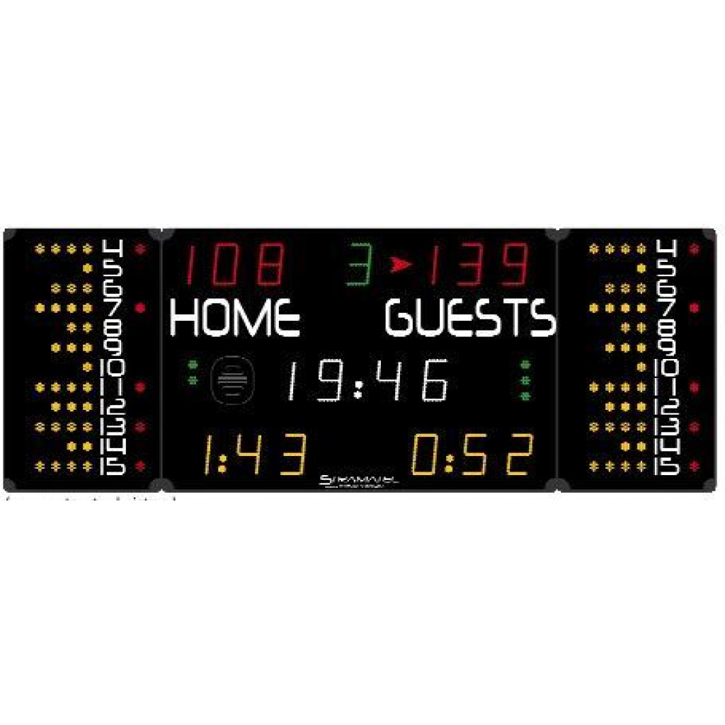 Team fouls (BB)/ Exclusion timer: 2 x 3 yellow LED digits (15 cm)