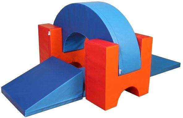 Skummoduler i 5 deler Perfekt i lekerommet! Klatre - balansere - krype Lag hinderløype! 2 stk bro-elementer (60 x 60 x 30/30 cm) 1 halvsirkel (30