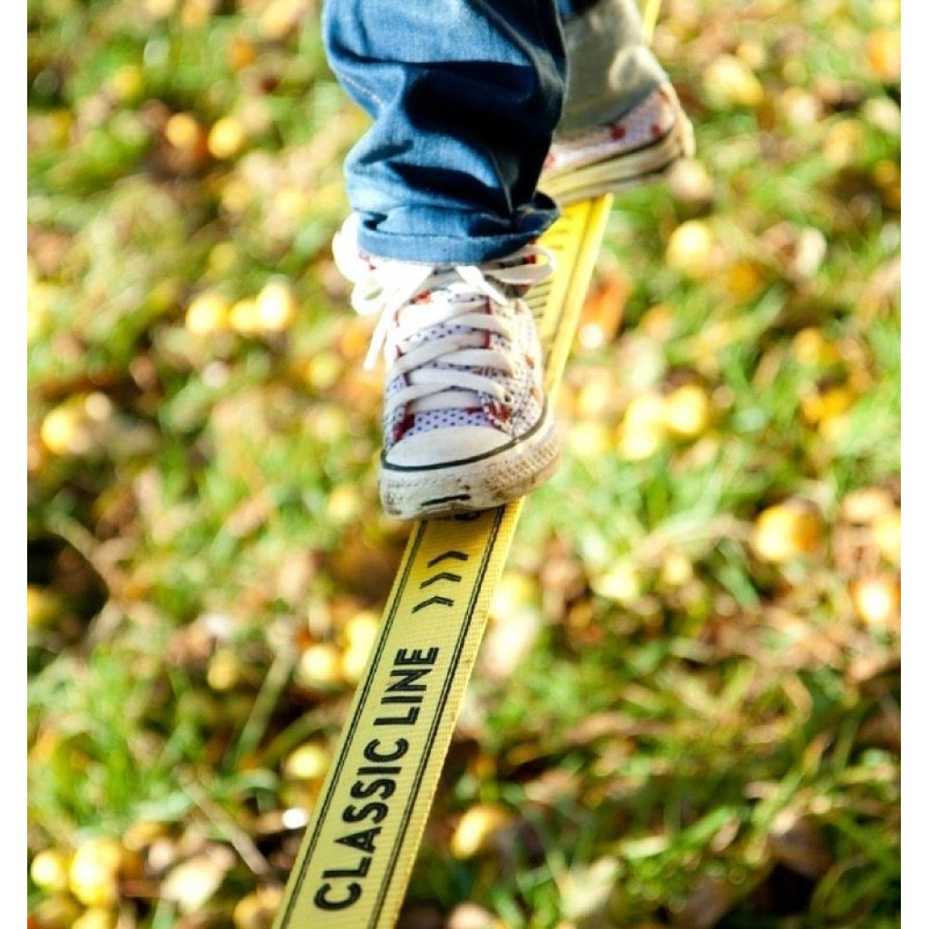 Slackline Classic 15 meter er en robust og fleksibel line som kan balanseres på både utendørs og innendørs. Morsom for både nybegynnere og viderekommene. Slackline kan brukes på skolen, på fritiden, av idrettslag og ungdomsklubber. Slackline skal kun festes til trær med en omkrets mellom