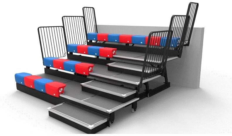 Denne tribunen er vårt enkle multifunksjonelle sittealternativ for treningssentre og flerbruksanlegg. Stolen tilbyr komfortabel og sjenerøs seteavstand og er ergonomisk utformet for god tilskuerkomfort. Vi tilbyr et utvalg av lyse varme farger og du kan evt. velge din egen kombinasjon av farger fra vårt sortiment! Denne tribunene kan med sine stoler forbedre utseendet av ditt nye eller eksisterende anlegg!