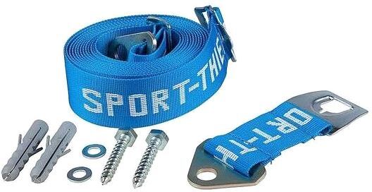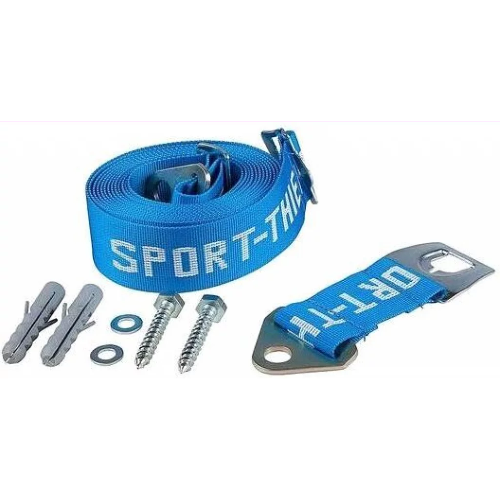 Veggholder for nedsprangsmatter, med 5 mm polypropylen bånd. Holderen har metall-lås i fronten, justerbart belte, metallringer på endene. Med skruer og bolter for veggmontering.