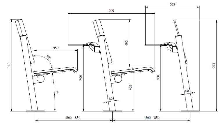 • Setet er beregnet for montering i sett - som en tribune eller et publikumsområde, fast montert.