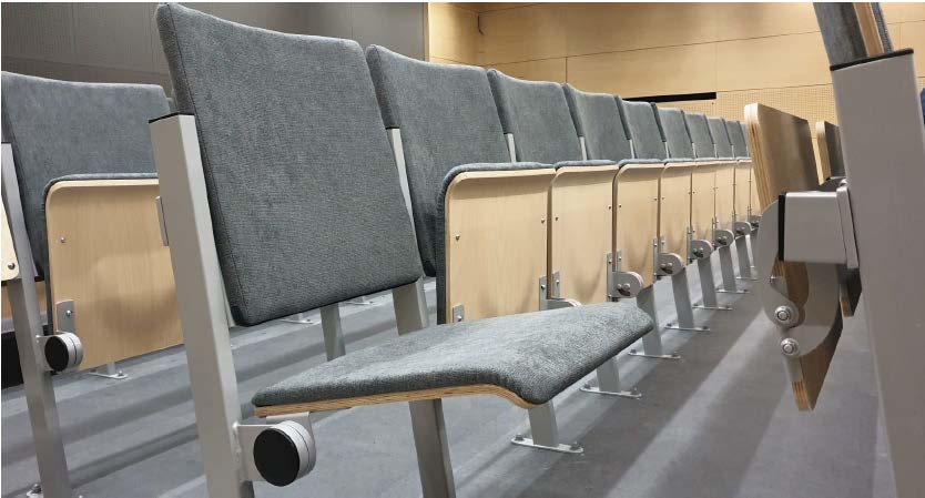 Denne stolen er designet for sport, undervisning og kulturelle fasiliteter (kino, teater osv.).