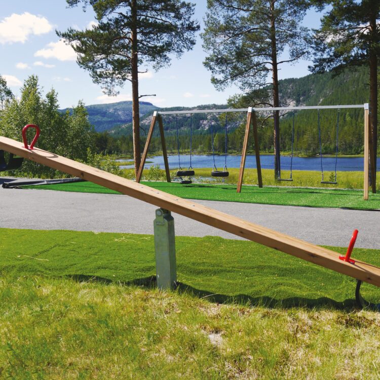 Klassisk vippe/dumpehuske med to seter. Limt treverk og god demping. Leveres med vippekonsoll. Størrelse 3,5 x 0,12 meter Arealbehov 5,5 x 2,2 meter Fallhøyde 1,1